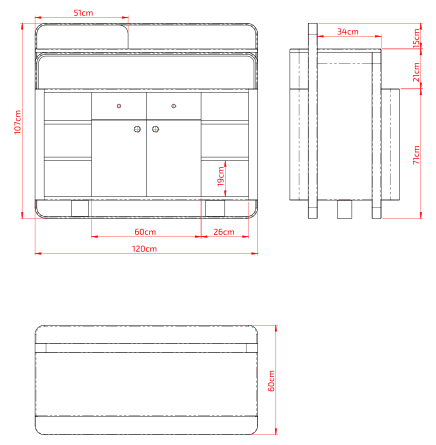 Cuenta con múltiples espacios de almacenamiento: dos cajones con cerradura para guardar documentos u objetos con seguridad, y un amplio compartimento con doble puerta para organizar material, productos o accesorios. Además, incluye frontal protector, que aporta privacidad y comodidad durante la atención al cliente.