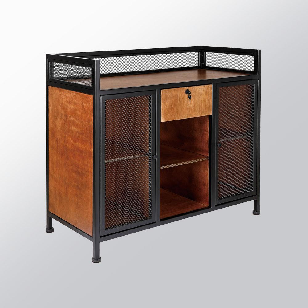 Incluye dos puertas con malla metálica y estante interior, ideales para organizar productos, material o documentos manteniéndolos accesibles. Además, incorpora un cajón con cerradura y llave para guardar objetos personales o elementos de valor con mayor tranquilidad, ayudando a mantener la zona de recepción ordenada y eficiente.