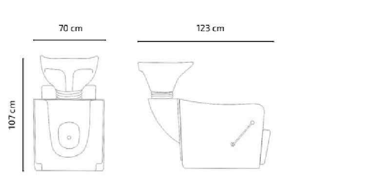 Lavacabezas ergonómico con sistema de reclinación manual.