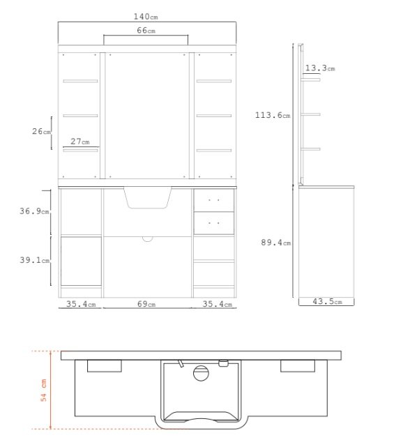 - Fabricado en tablero de aglomerado de alta densidad de 18mm libre de formaldehidos.