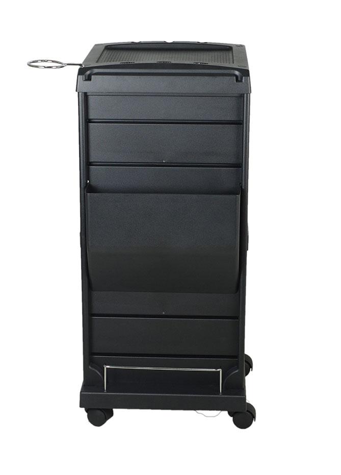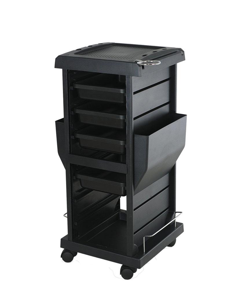 Carro de peluqueria deluxe negro, se expande fácilmente en una área de trabajo más grande.