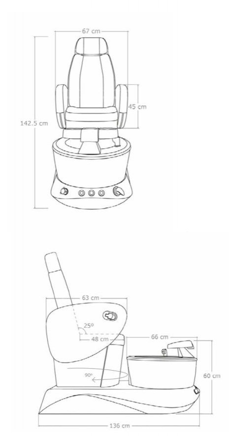 Sillón de pedicura SPA con asiento ajustable y bañera de pies con hidromasaje y función jet.