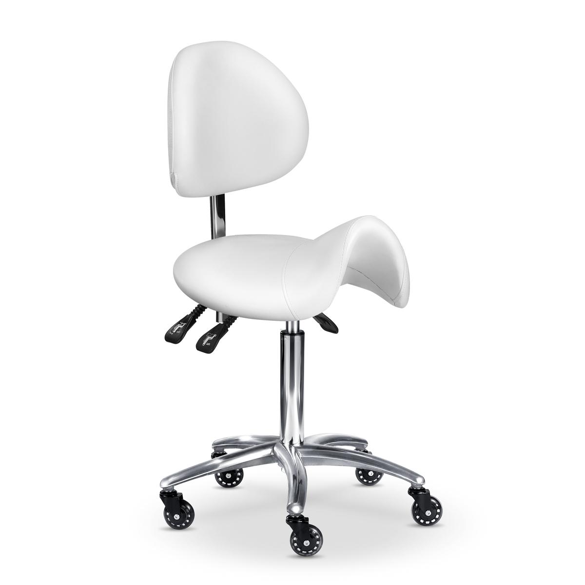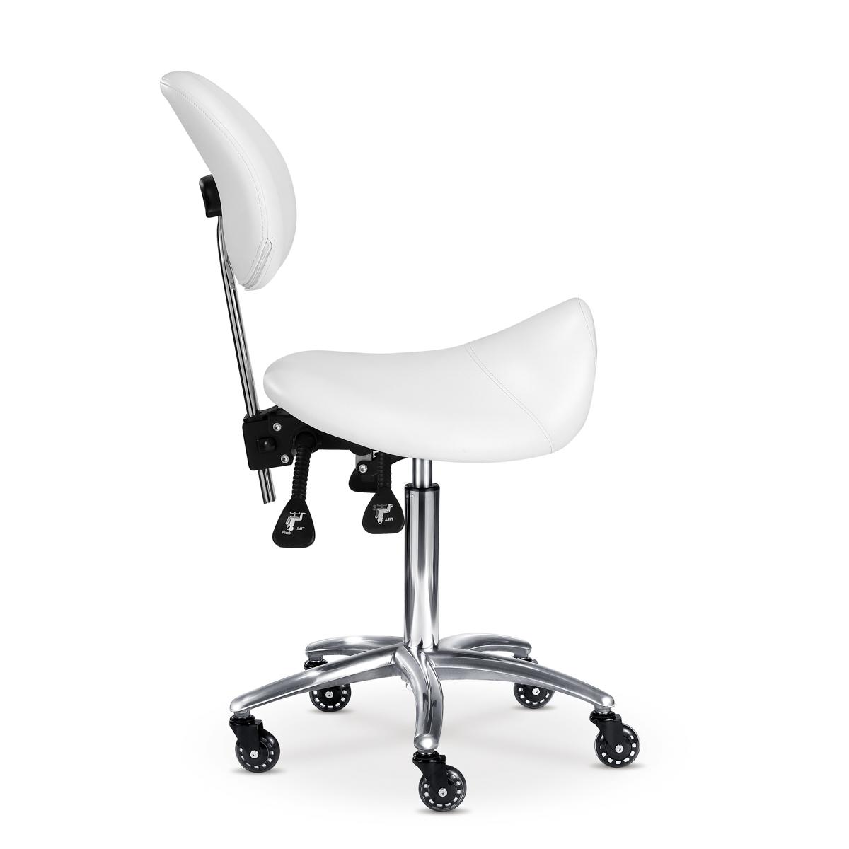 Taburete equipado con 3 pistones de gas para ajustar la altura, la inclinación del respaldo y la inclinación del asiento.