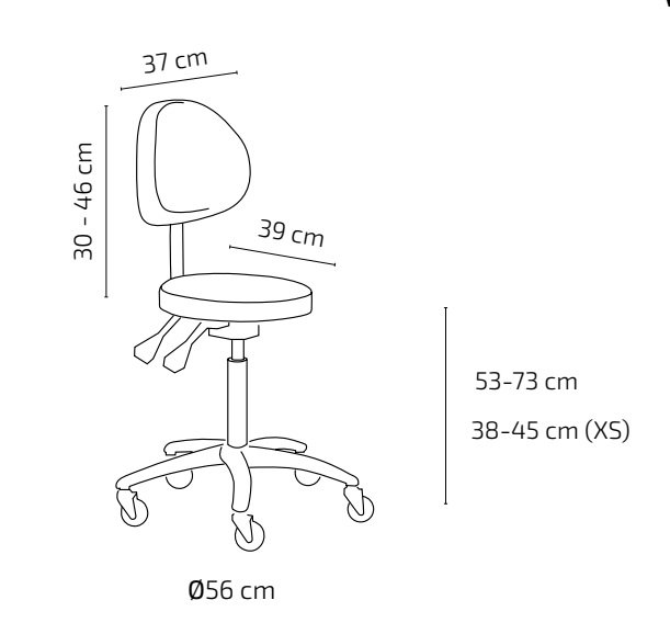 Taburete equipado con 3 pistones de gas para ajustar la altura, la inclinación del respaldo y la inclinación del asiento.