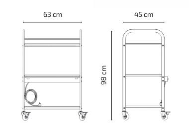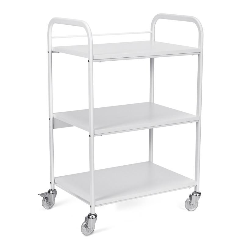 - 3 estantes, de 60 x 45cm en madera de color blanco ideal para alojar aparatos de estética
