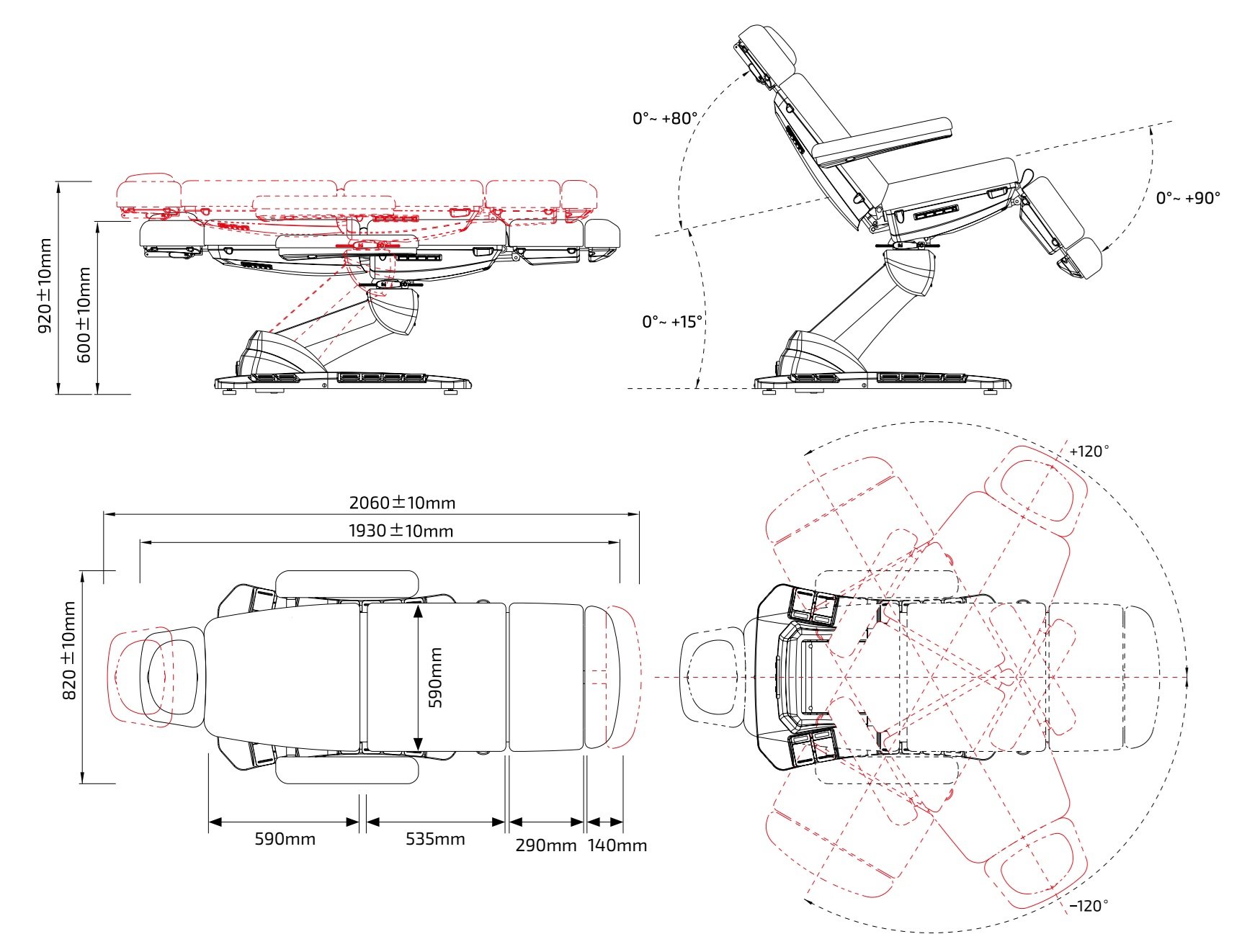 Con 4 motores que controlan la altura, el respaldo, el asiento y el reposapiés.