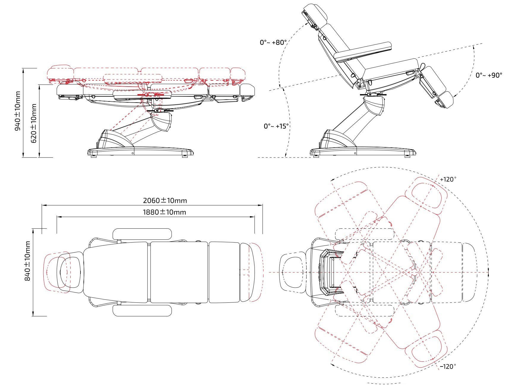 Opción con 4 motores que controlan la altura, el respaldo, el asiento y el reposapiés.