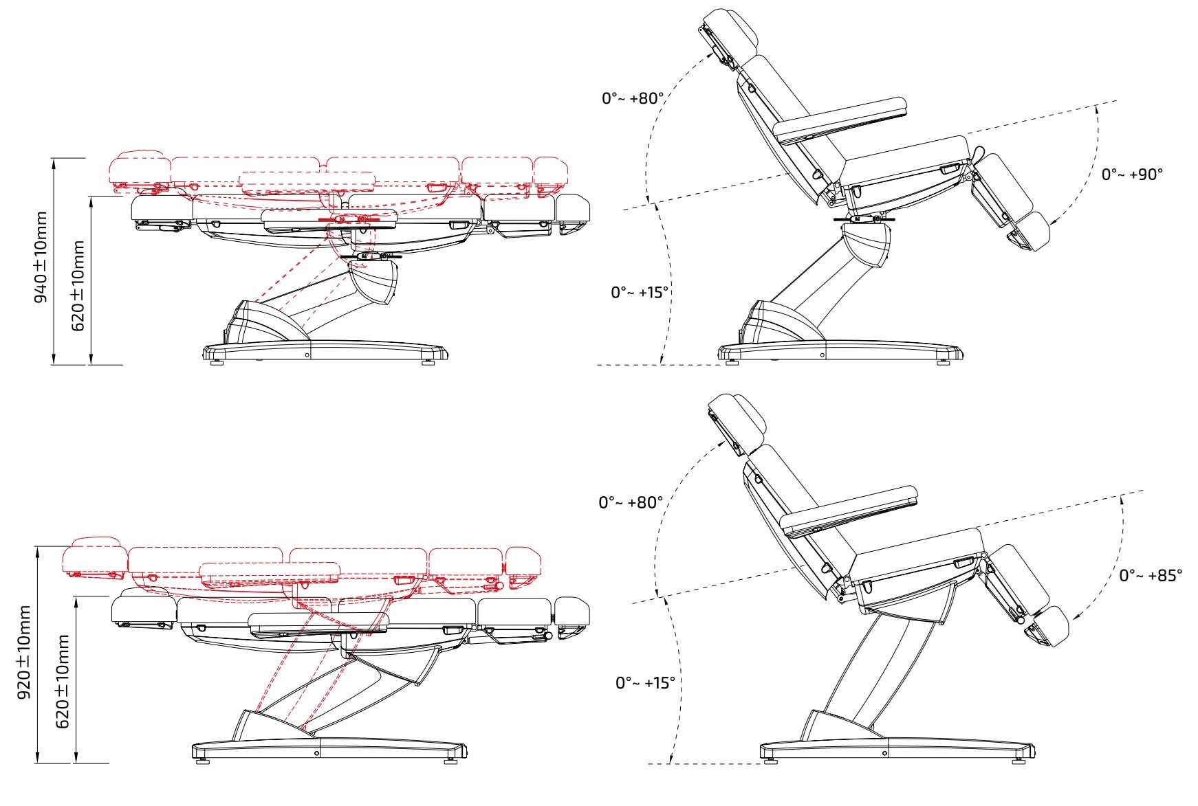 Estructura robusta con 3 motores que controlan la altura, el respaldo y el asiento.