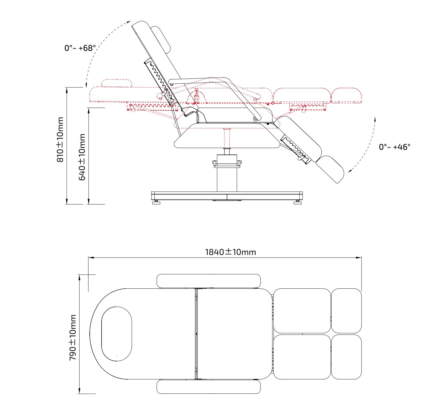 ▪ Equipado con 4 barras de trinquete para ajustar la inclinación del respaldo y el reposapiés.