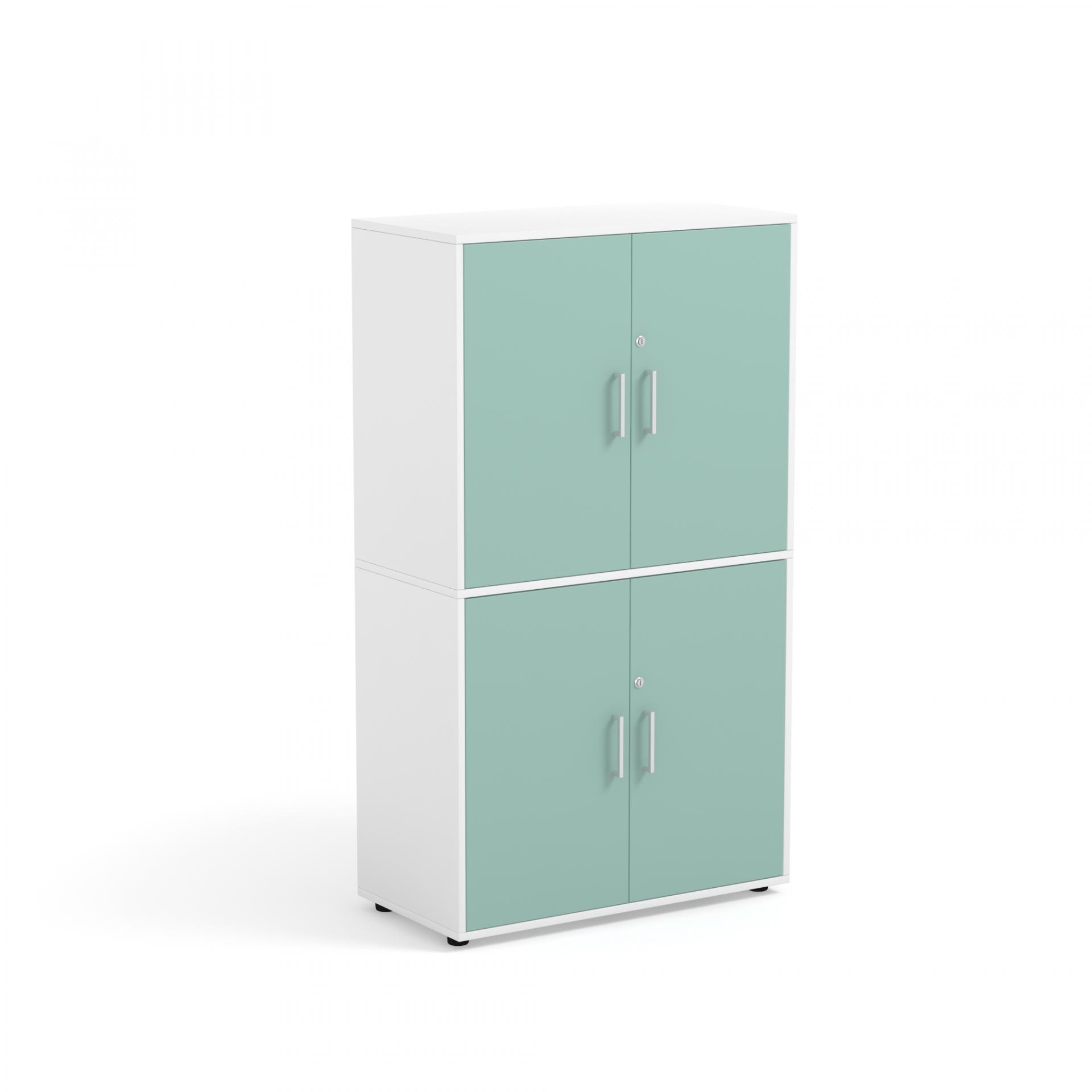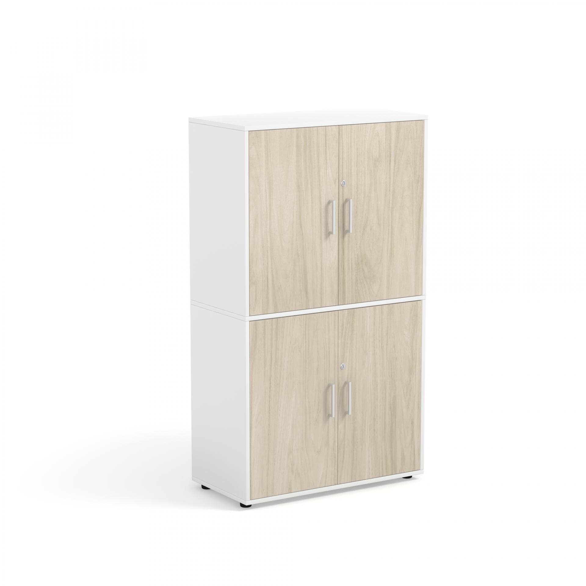 Armarios de madera con estanterías regulables en altura. Incluyen 4 niveladores para adaptarlos a los pequeños desniveles del suelo.