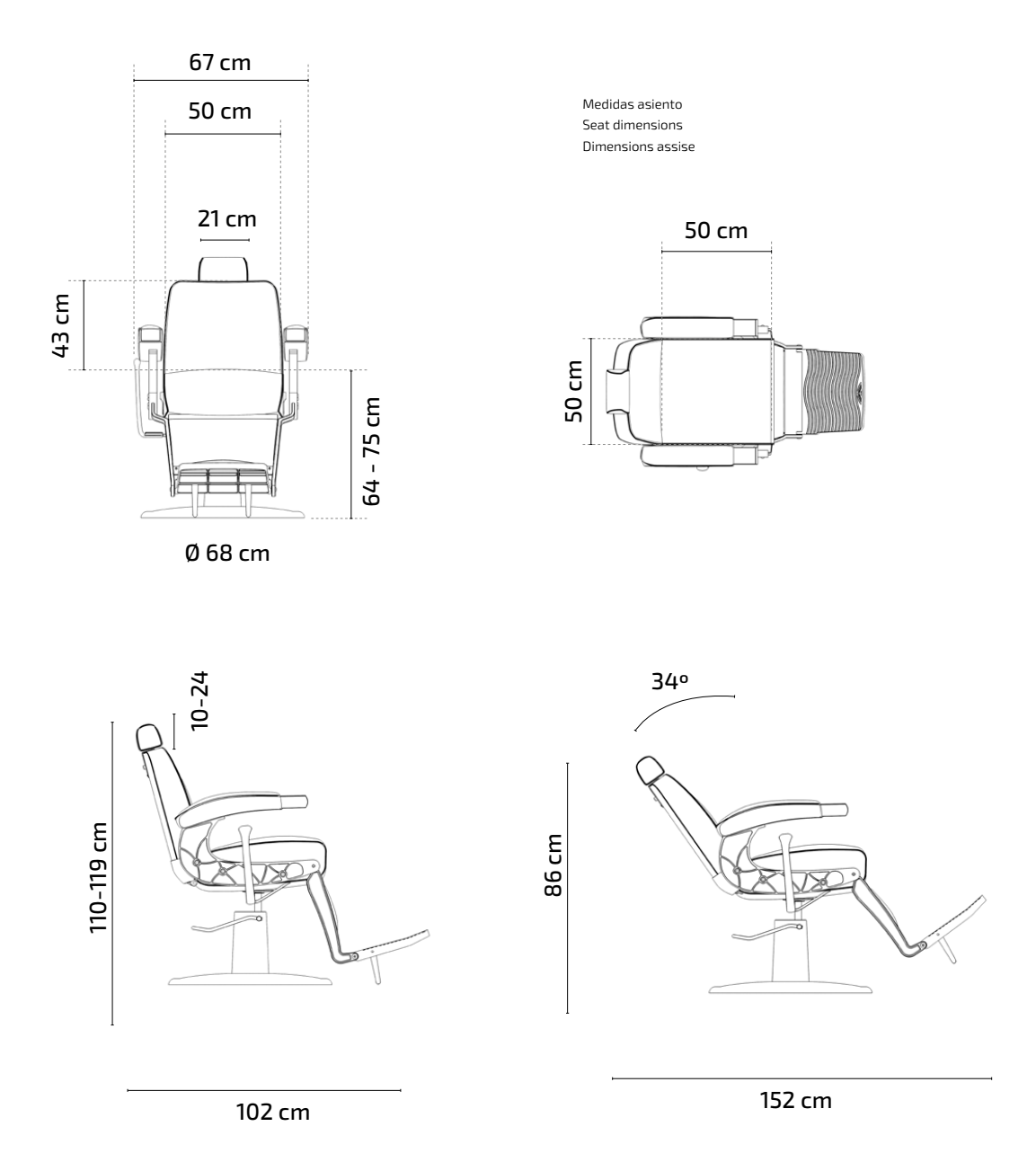 - Estructura de aluminio inyectado. Acabado metalizado mate. Butaca muy ligera.