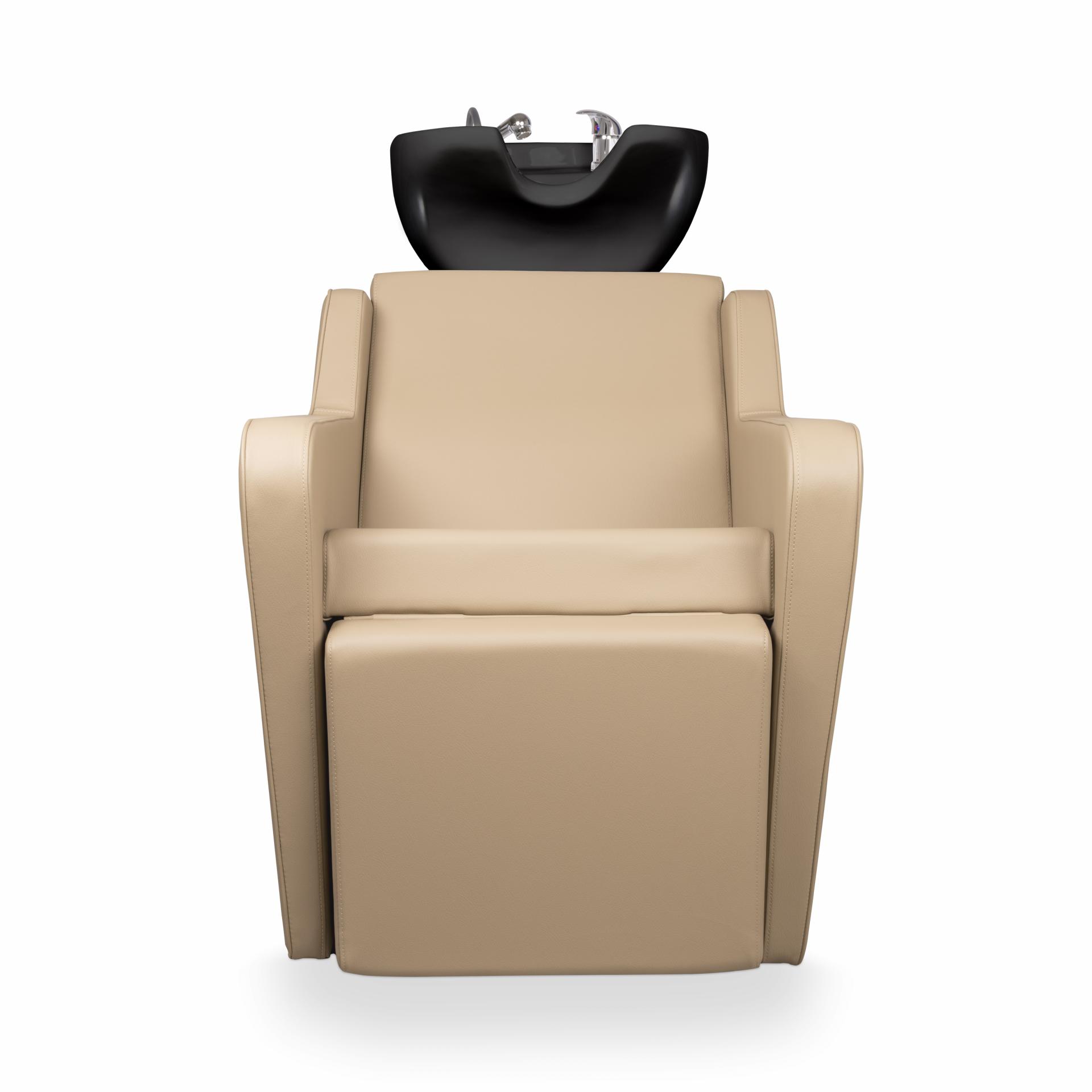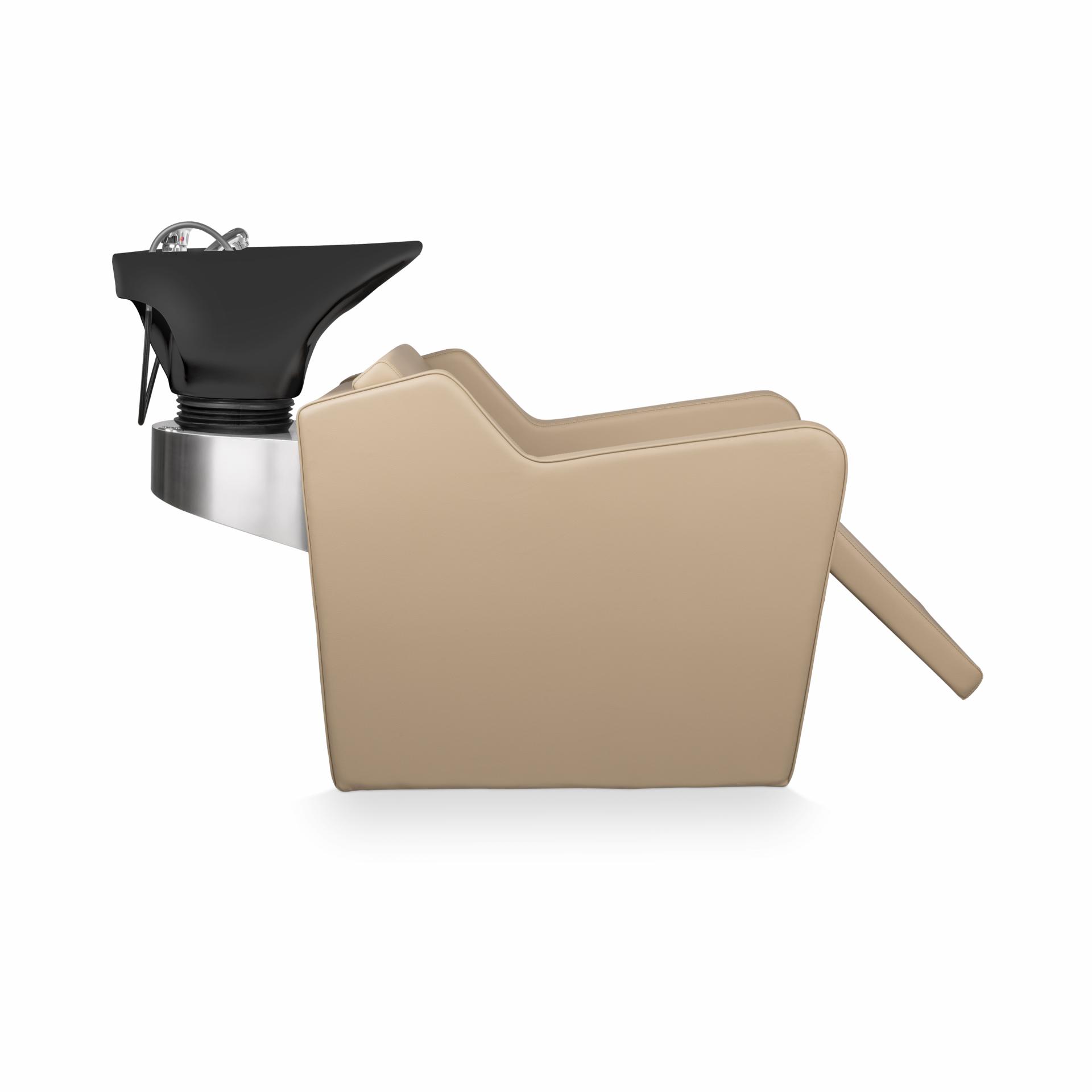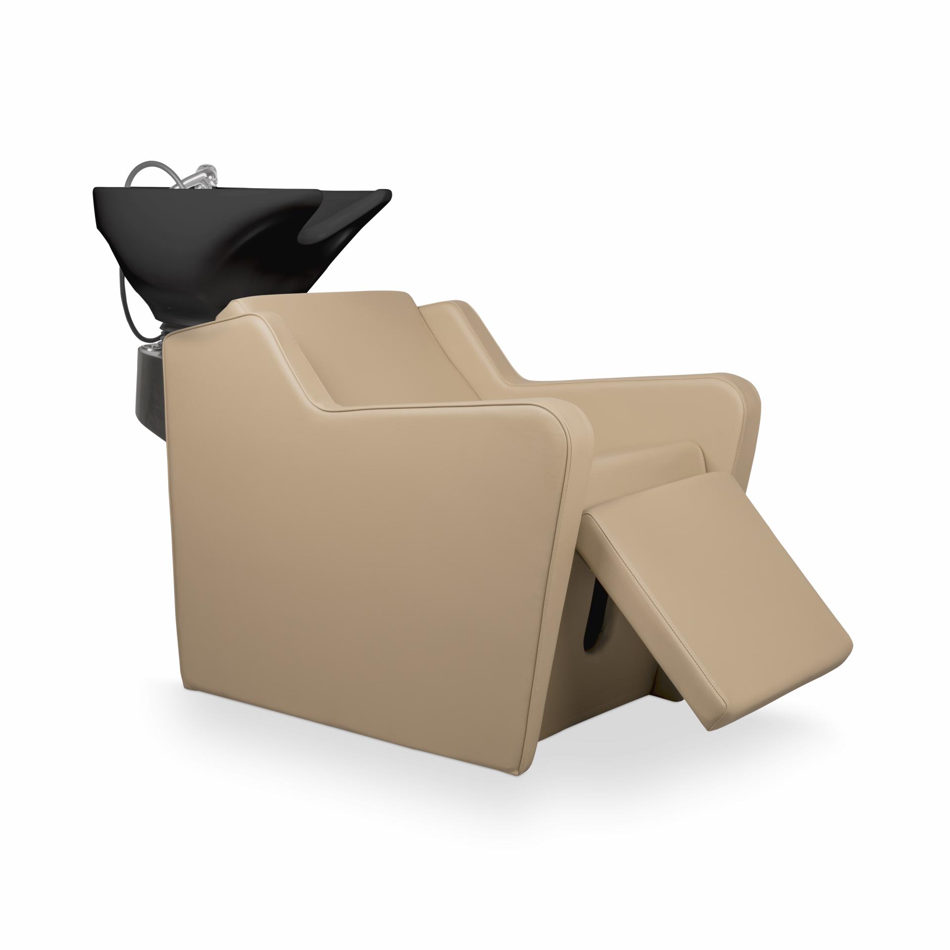 Lavacabezas de línea depuradas que combina con múltiples escenarios decorativos. Muy confortable gracias a su ergonomía y su reposapies elevable eléctrico.