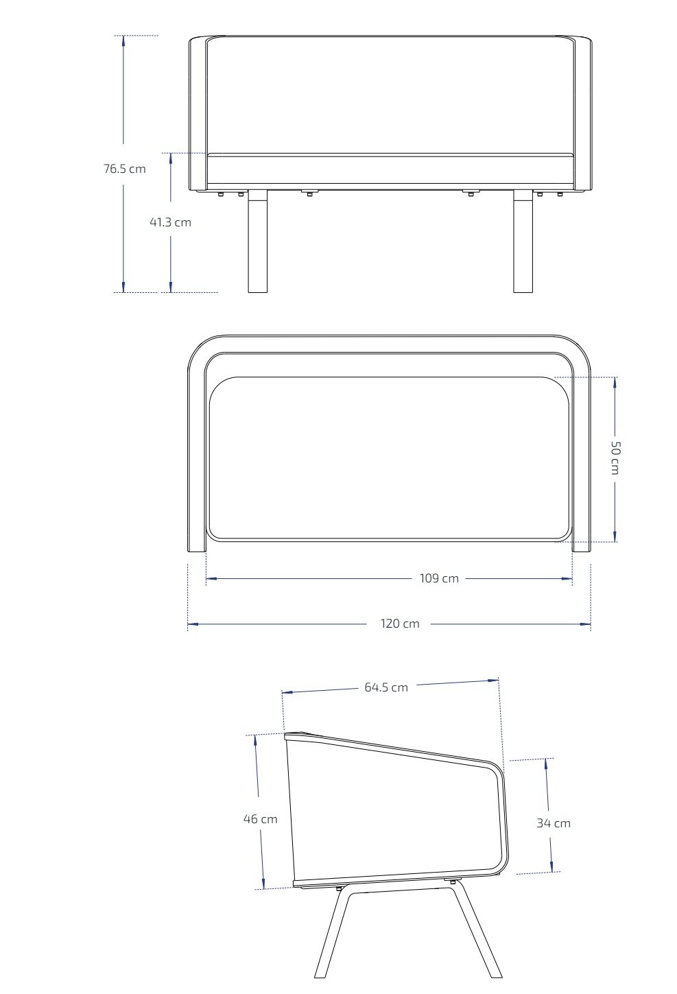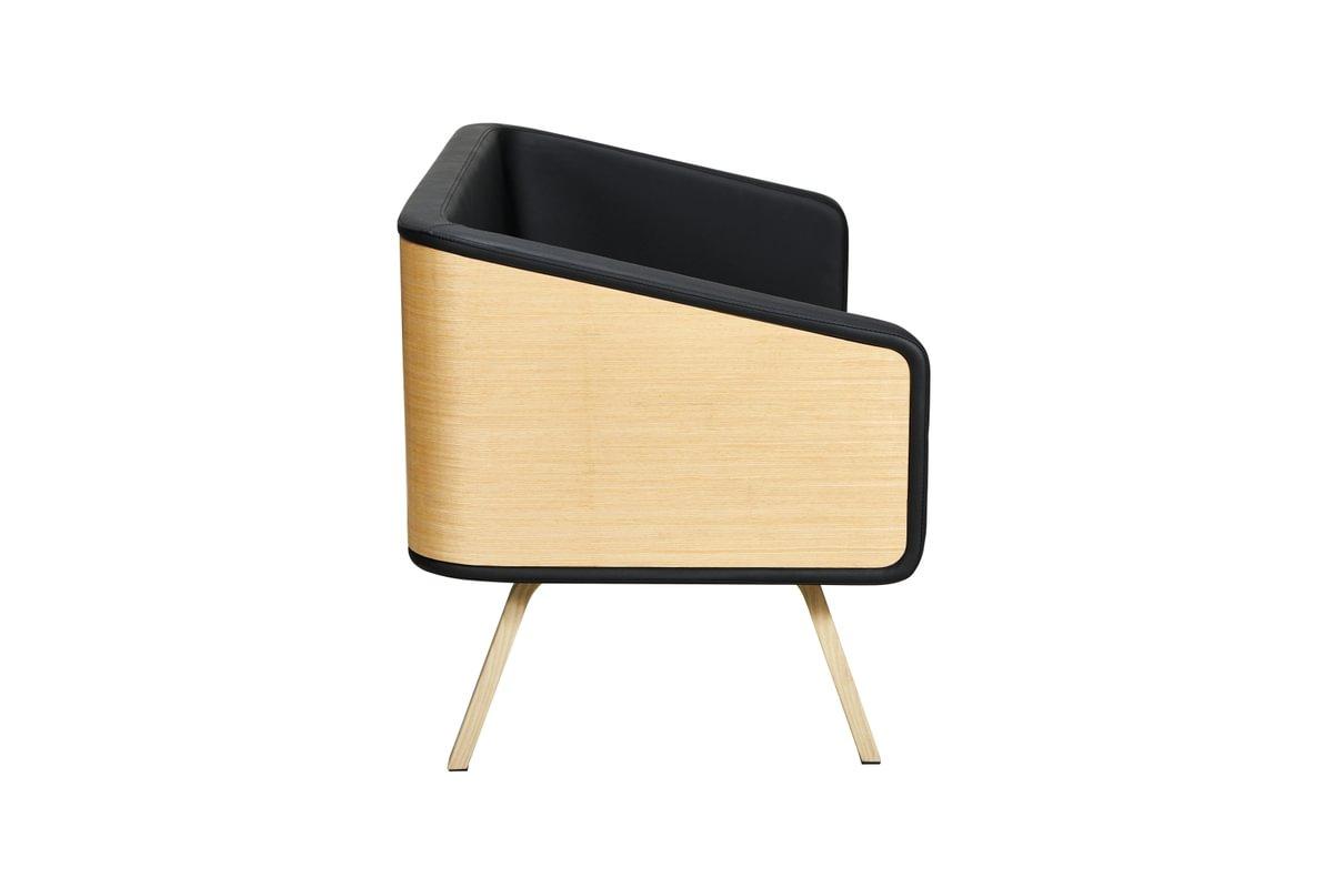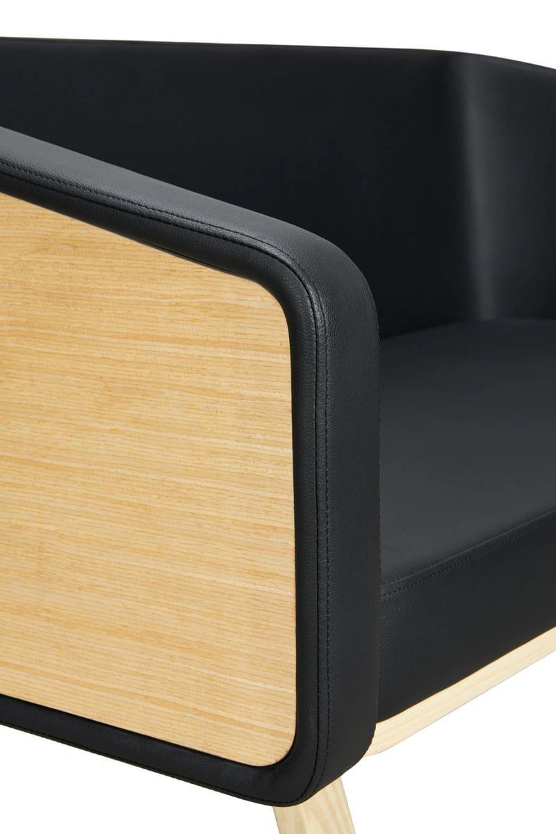 Sofá de diseño ideal para salas de esperas de peluquerías y barberías. Inconfundible y exclusivo. Sofá con respaldo de madera curva realizado mediante un proceso artesanal.