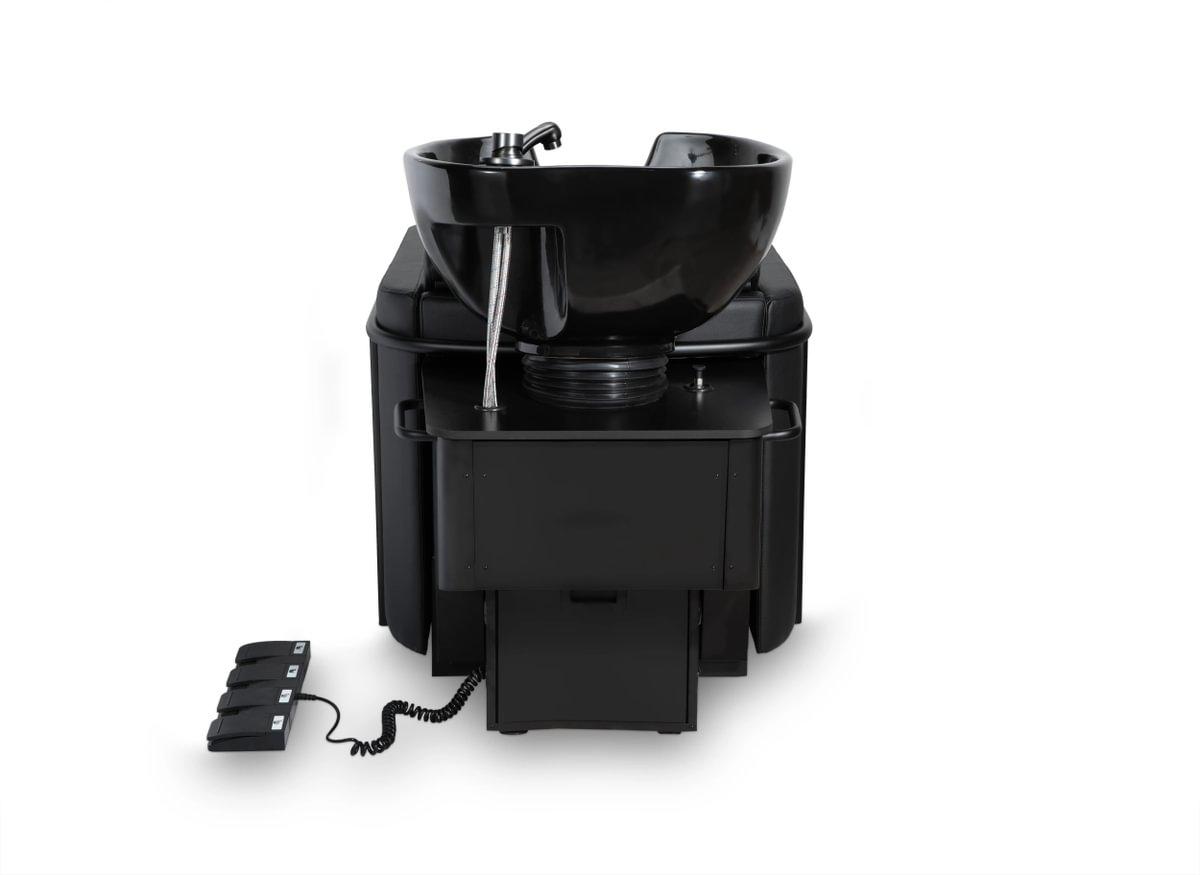 En el lavacabezas HERA todo es fácilmente ajustable y desplegable para que tanto cliente y como estilista minimicen sus movimientos de la manera más cómoda. Montada sobre mecanismo basculante, orientable vertical y horizontalmente con embellecedor de goma. Con pedales para controlar los motores integrado. Tapizado con una estructura metálica tubular, lavacabezas en cerámica y base de madera