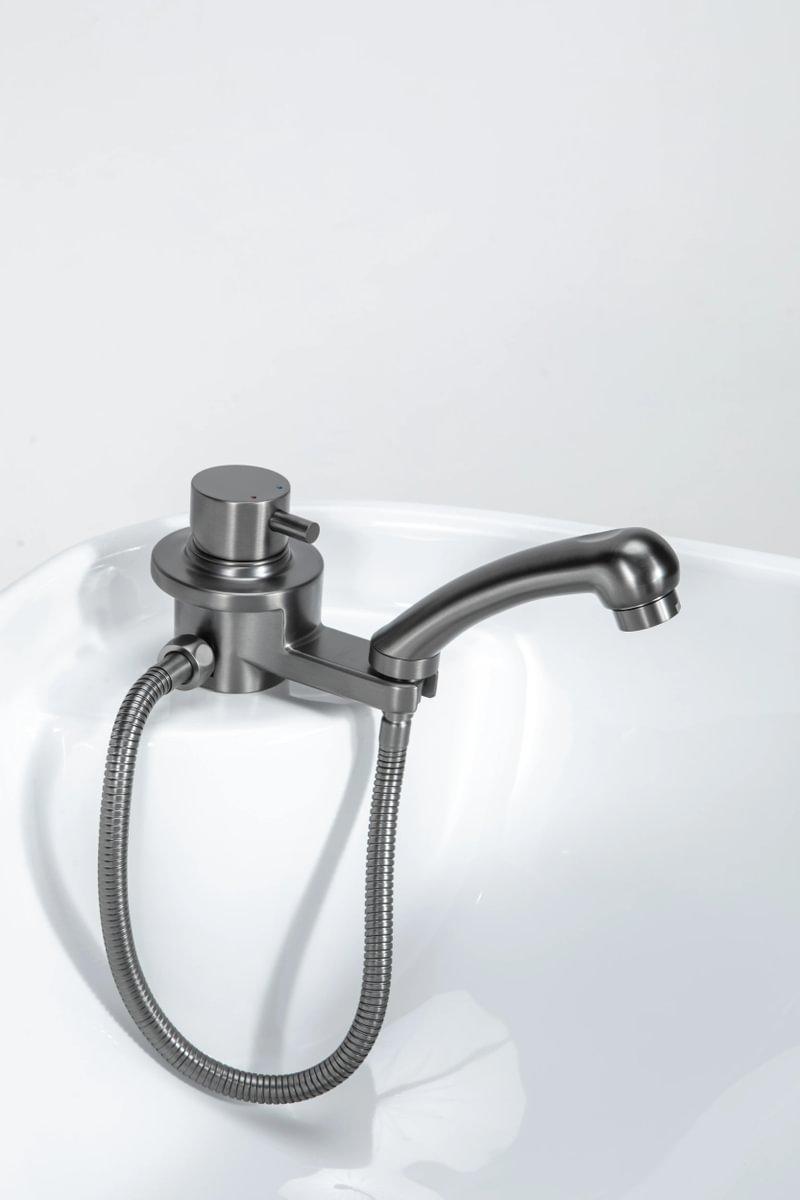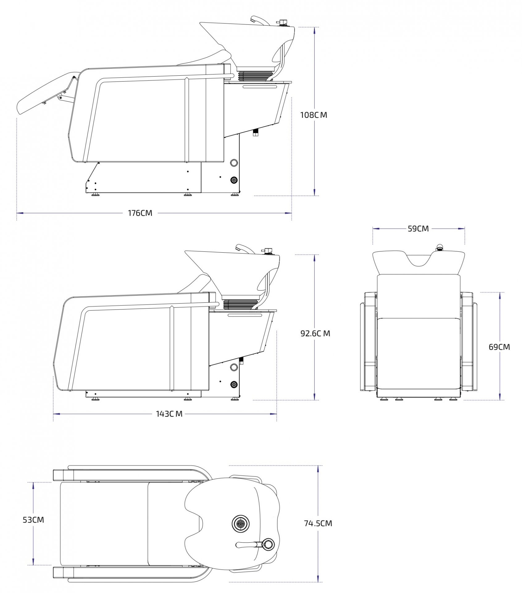 En el lavacabezas HERA todo es fácilmente ajustable y desplegable para que tanto cliente y como estilista minimicen sus movimientos de la manera más cómoda. Montada sobre mecanismo basculante, orientable vertical y horizontalmente con embellecedor de goma. Con pedales para controlar los motores integrado. Tapizado con una estructura metálica tubular, lavacabezas en cerámica y base de madera