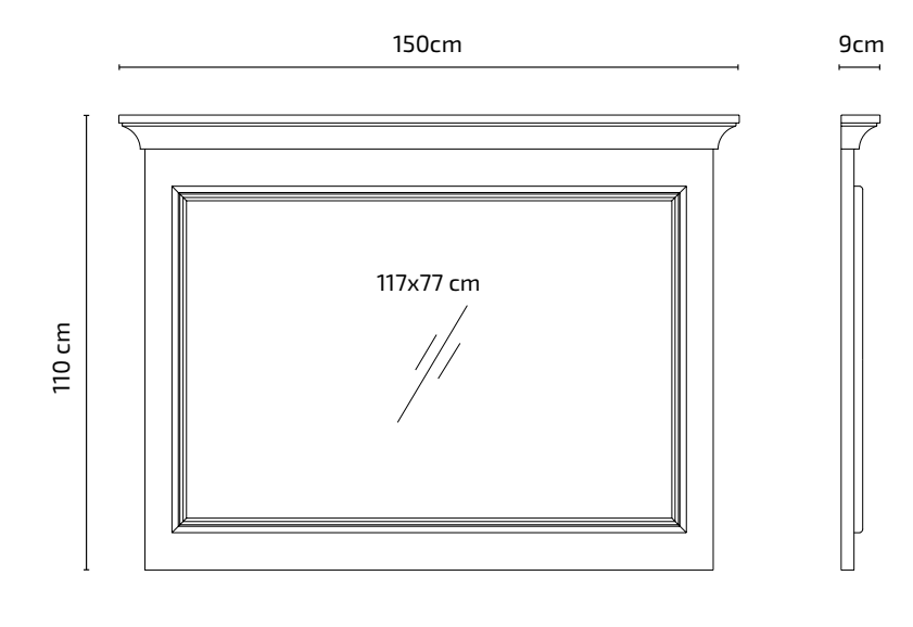 Estructura de chapa de madera natural con molduras de madera maciza y barnizado color negro.