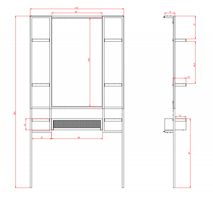 - Bandeja de chapa perforada con sobre de madera de fresno