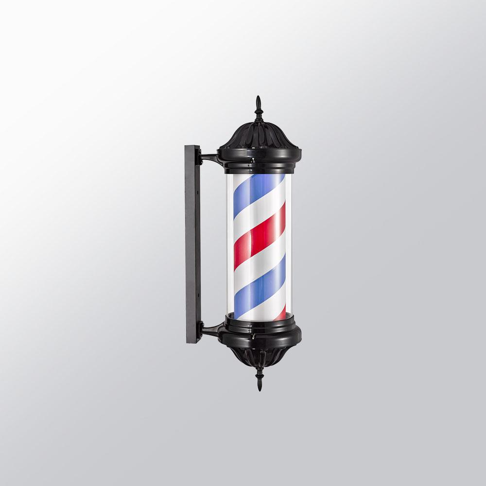 Incorpora luz LED y sistema giratorio, ofreciendo una iluminación eficiente y un movimiento continuo que ayuda a destacar la barbería y captar la atención en la entrada.