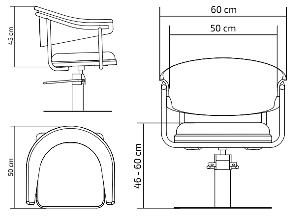 El asiento y el respaldo ergonómicos garantizan una postura cómoda durante todo el servicio, mejorando la experiencia del cliente en cortes, color y peinados. Para facilitar la operativa del profesional, incorpora bomba hidráulica ajustable en altura, permitiendo adaptar la posición de trabajo con precisión y comodidad.