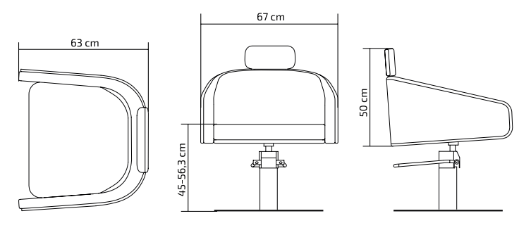 La curvatura ergonómica del respaldo está pensada para mejorar la postura y la comodidad del cliente durante el servicio. Para facilitar el trabajo del profesional, incorpora bomba hidráulica ajustable en altura, permitiendo adaptar la posición de trabajo con precisión y comodidad en cada servicio.