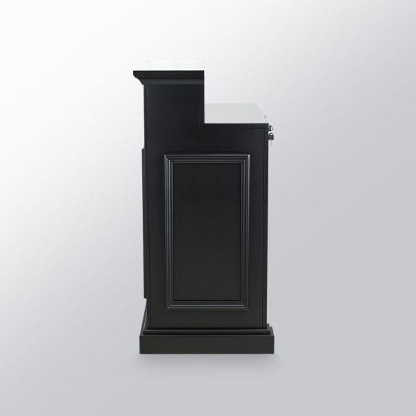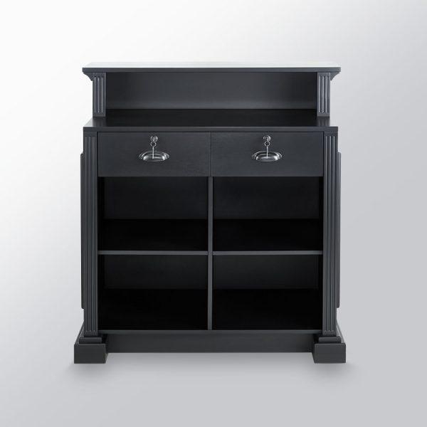 Incluye dos cajones con cerradura y llave, una solución práctica para guardar documentos, objetos personales o elementos de trabajo con mayor tranquilidad, manteniendo la recepción ordenada y funcional.