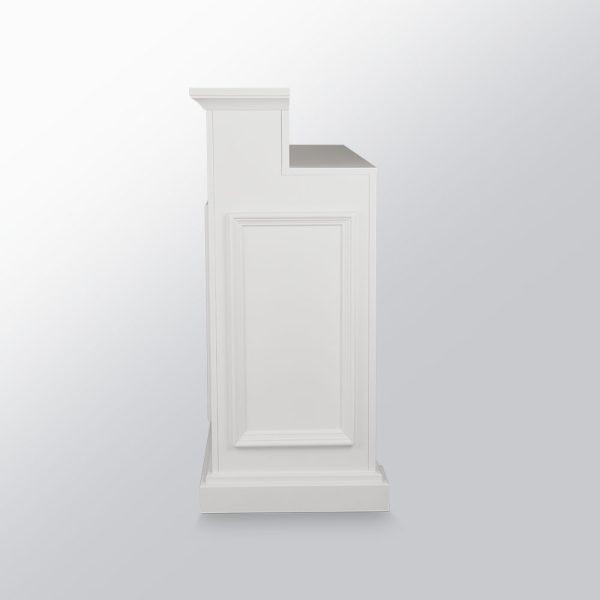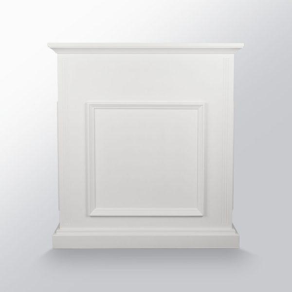 Su estructura en chapa de madera natural, junto con molduras de madera maciza, aporta solidez y un nivel de acabado superior. El barnizado en color negro o blanco, refuerza su estilo clásico y atemporal, creando una zona de bienvenida con presencia.